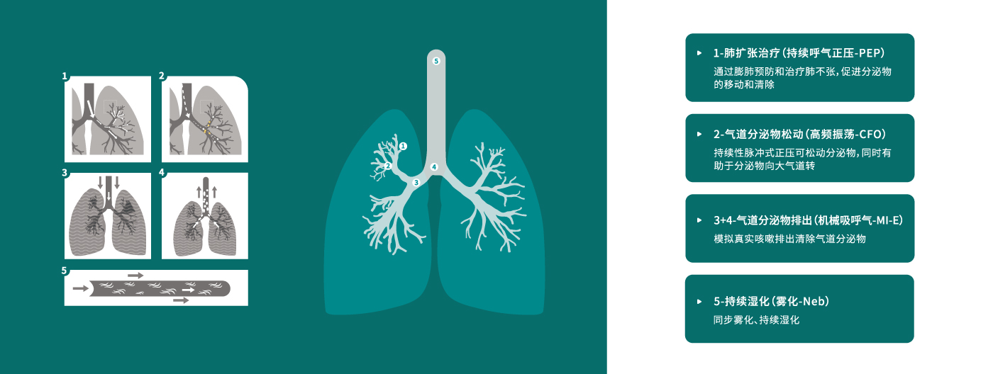 AC系列气道廓清咳痰机旨在松动气道分泌物(气道振荡及肺扩张-OLE)以及模拟真实咳嗽清除气道分泌物(MI-E)。为患者与医护提供高效、专业、可靠的气道清除解决方案。