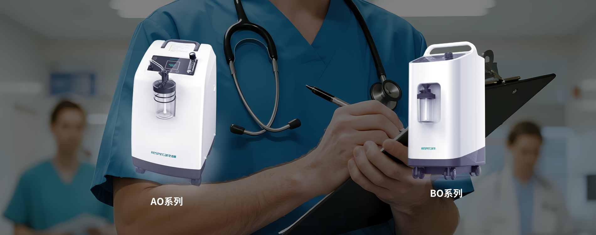 AO系列以≤42dB(A)的超静音运行守护患者睡眠,持续稳定输出93±3%高浓度氧气。